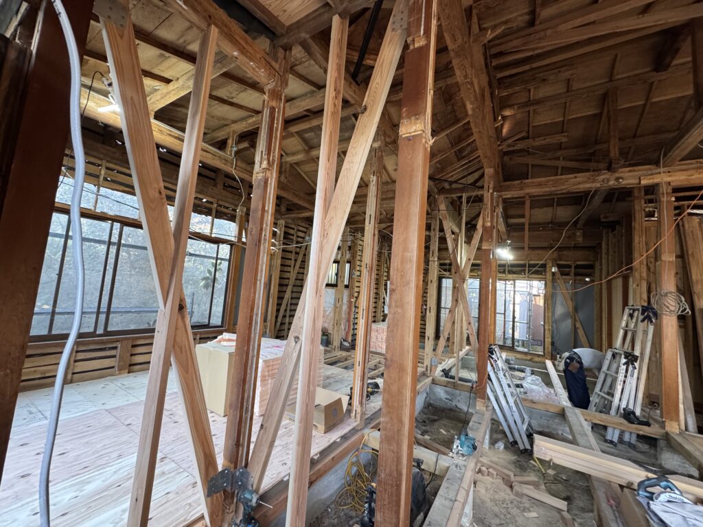 blog 耐力壁補強 玄関ドア・戸のリフォーム 2世帯にするリフォーム 間取りを変えるので既存の壁を壊したら、全然筋交が入ってなくて、頼りなくて仕事してても居るのが怖い この面、この面、この面も、補強、補強、補強して安心してきました。 前の記事 次の記事 一覧へ戻る