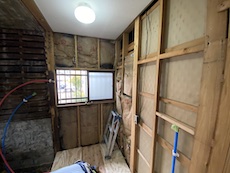 ユニットバスを設置 入口周りの壁を仕上げていきます。 |