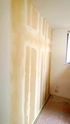 木下地を組んでプラスターボードを貼る 仕上げにクロスを貼ります |