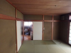 収納の戸のクロスの劣化した感じがまた部屋を暗くしています | 畳の下の杉板 下には断熱材がありませんので、縁の下の湿気や冷気が直接畳部分にあたります |