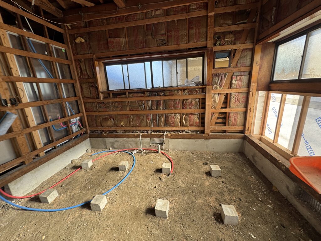 解体後、床下の状態を確認しながら給排水管を新設し、土間からしっかりと下地を組み直しました。