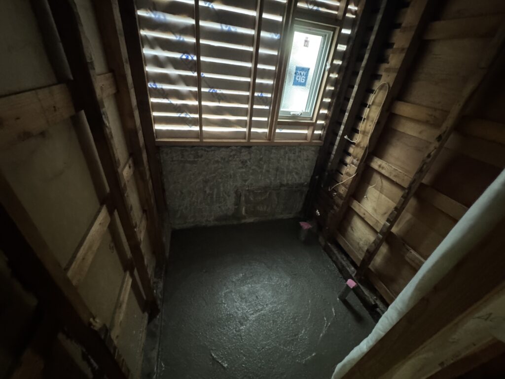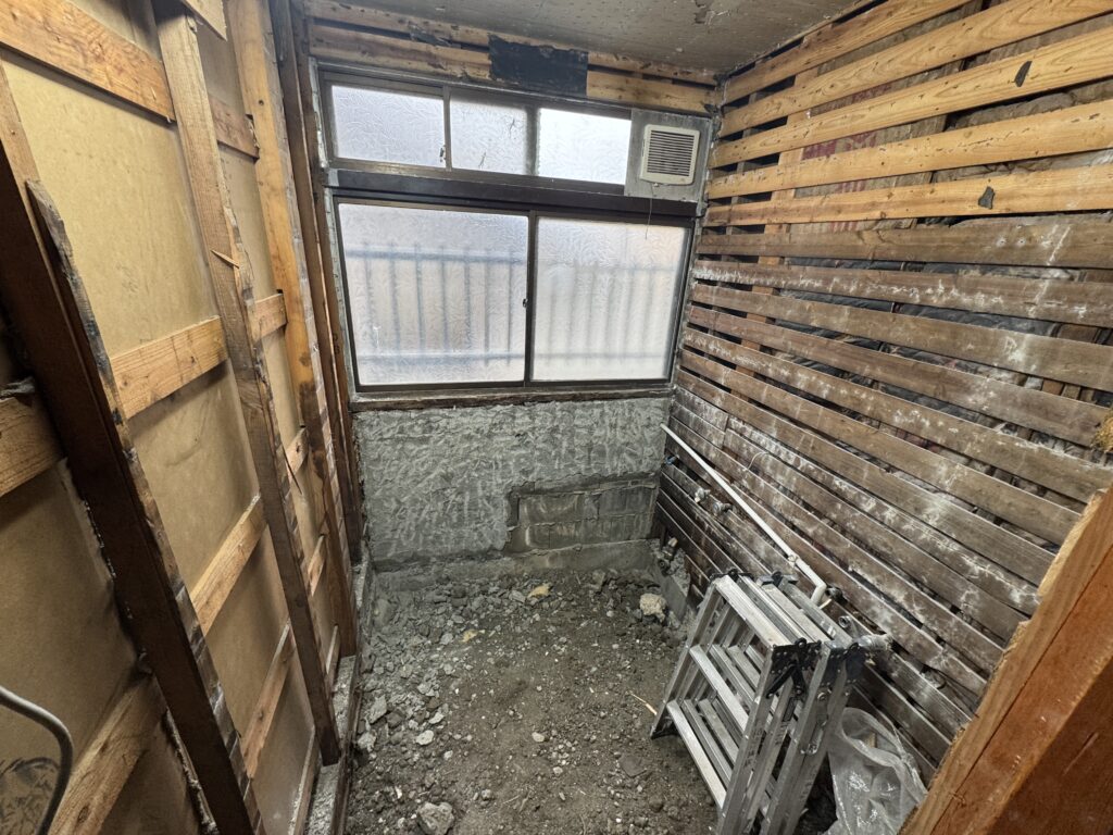 既存の在来浴室を解体し、土間コンクリートを打設して新しいシステムバス設置のための基礎を整えました。