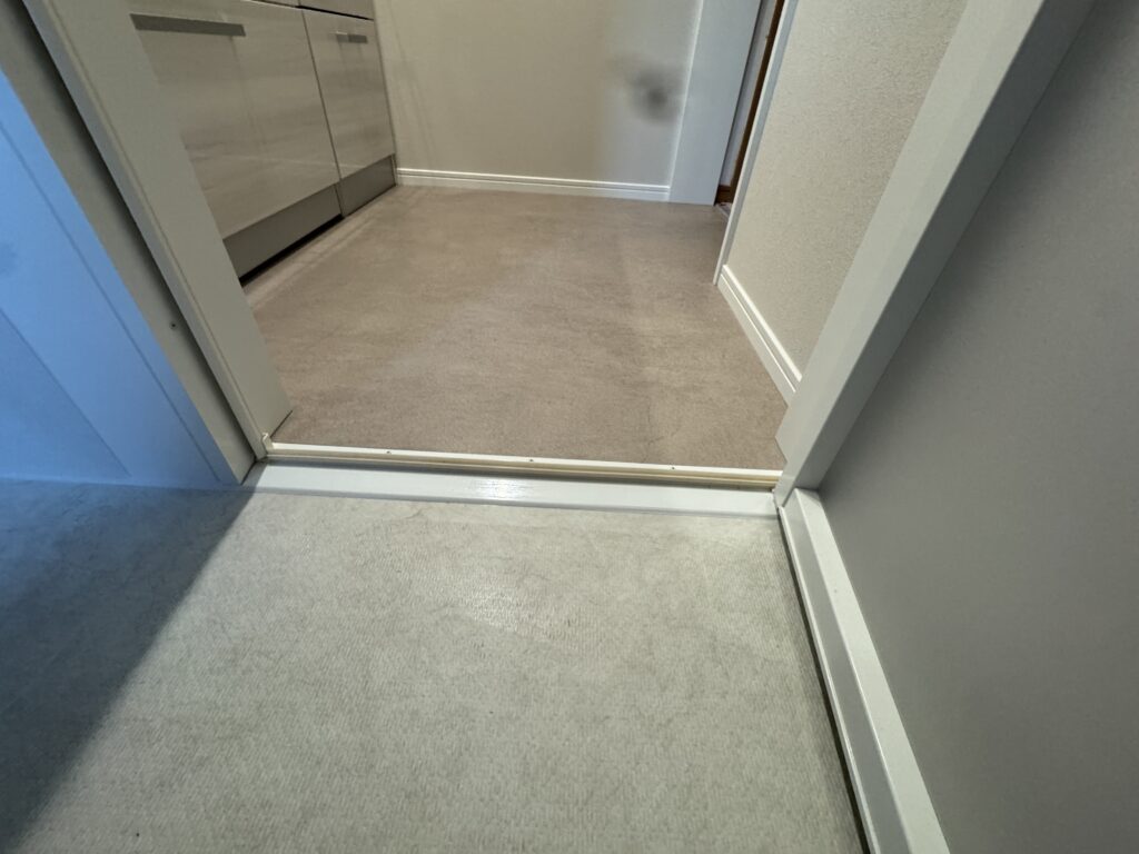 サイドキャビネットにより備品の整理がしやすく、生活感を抑えたすっきりとした印象に。また、浴室との取り合い部分は段差がしっかり解消され、移動のしやすいバリアフリー仕様に仕上がりました。