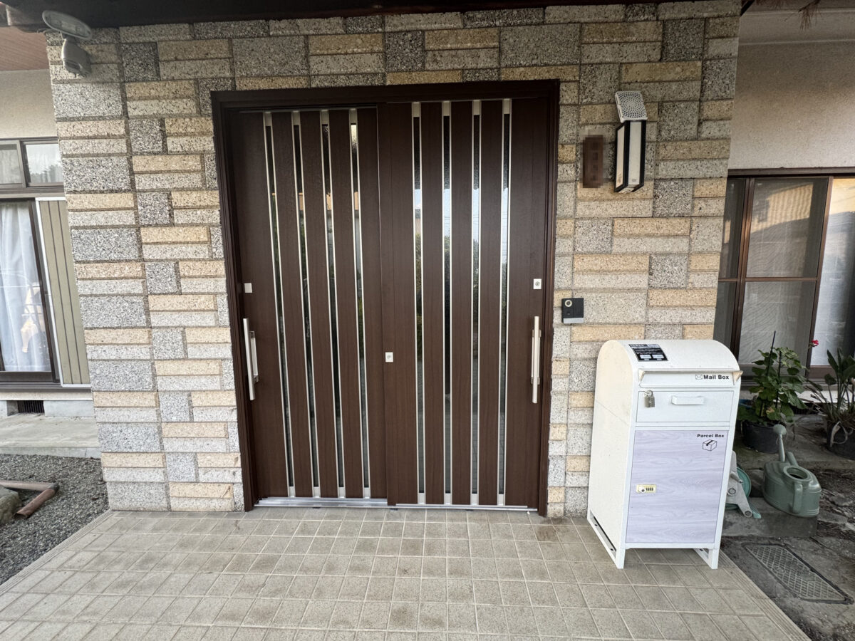 玄関は建物の顔となる部分ですが、既存の引き戸は経年による色褪せや動作性の低下が見られ、断熱性や防犯性の面でも現代の住宅性能には及ばない状態でした。
